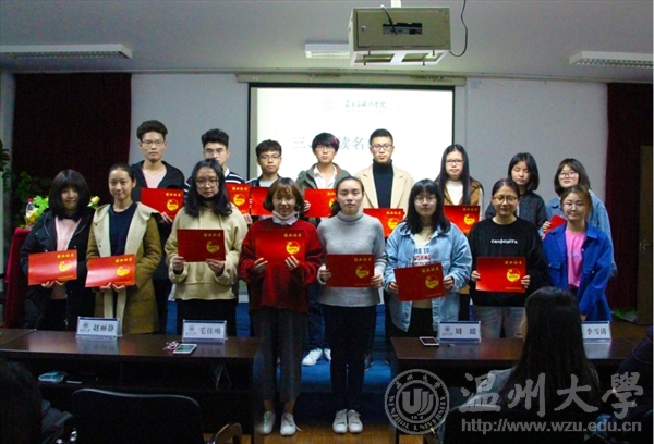 2016年12月20日,必赢bwin线路检测中心团委学生会于2B-4001举行了2016-2017学年第一学期团干培训结业仪式。出席此次活动的有团委辅导员李雪涛老师,学生会团委副书记周瑶学姐、主席毛佳唯学姐、副主席赵丽静学姐以及参加本学期团干培训的所有干事们及大一班长们。 仪式伊始,全体与会人员起立奏唱团歌时,从大家坚定的眼神和高扬的歌声中能明显感受到大家在经历过团干培训后的成长。接下来就是团干培训的颁奖仪式,继宣读本学期团干培训结业人员名单和优秀学员名单后,老师与主席团成员分别为大家颁发了团干培训结业证书和优秀学员证书,并合影留念。相信大家会在来年的团学工作中有更多收获,取得更大的进步。 最后,在热烈的掌声中美院2016-2017学年第一学期团干培训结业仪式圆满落幕。 通讯:蔡兴忠赵春柱摄影:孙辈辈