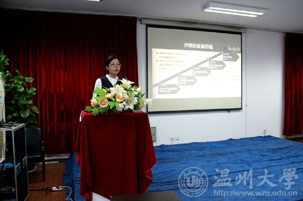 11月22日上午10点30分,2016乔顿企业高校招聘宣讲会于必赢bwin线路检测中心2B4001举行。乔顿服饰公司人事招聘经理杨伟伟出席此次会议,装设计与工程系主任高广明、学生科副科长叶筱卉和2017届服装设计专业的毕业生参加本次会议。