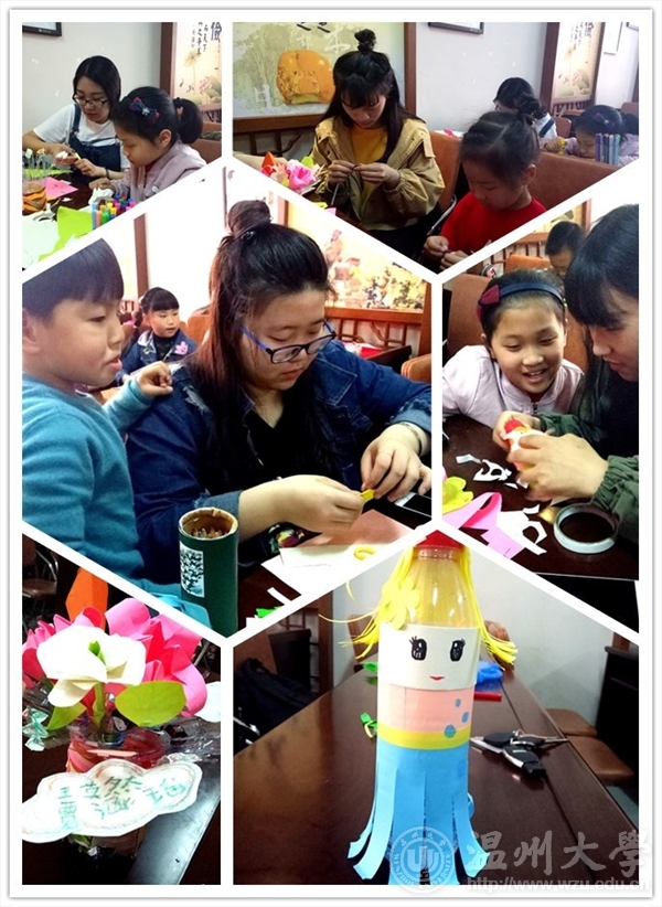 2017年4月15日,温大必赢bwin线路检测中心“艺家人”青年志愿者协会照常在梅泉社区的文化礼堂进行了支教活动,本次活动的主题是“心灵手巧,变废为宝”。