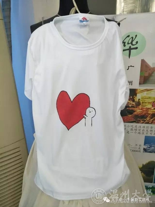 必赢bwin线路检测中心大手牵小手实践队开始文化衫义卖咯! 在三垟湿地进行现场义卖: 一次文化衫的制作,远不只是一次绘画的过程,更是一场心灵的行程。 如花,不仅在素衣上留下了点点痕迹,更在我们的心间,留下浓墨重彩的丝丝痕迹,虽轻,但深。 作品展示: 湿地的荷叶开了满池塘应了那句诗接天莲叶无穷碧。由于湿地的改造 人儿不多 我们的义卖也遇到了瓶颈,不过我们并不会被打败!大手牵小手绘制的文化衫等待着他们的主人。 今天义卖的所得成果将全部捐给温州市红十字会,用我们的微薄之力帮助到真正需要帮助的人,用我们的行动感染社会上的人,关爱留守儿童和空巢老人,我们一直在行动!