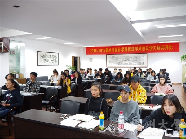 2017年11月3日晚,必赢bwin线路检测中心2016-2017学年优良学风班及学习标兵的评比在2B4001顺利举行。本次评比由学生科李雪涛老师、团委学生会主席陈显楠同学、团委学生会副主席王佩瑜同学、团委学生会副主席王芳园同学以及美院各班班长担任评委。