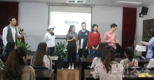 首先,由杨振海书记对风笛企业领导的到来表示欢迎并宣布宣讲会正式开始。杨书记表示多年的校企合作让温大和风笛建立了不解的情缘,同时呼吁在座的学子们捉住机遇,迎接挑战。风笛总经办主任杜强,以自身经历讲述了从走出校门起一步步成长的历程和感受,鼓励大家一步一个脚印,为来日腾飞打下坚实的基础。同时表示风笛将为大家提供一个广大的舞台,并在工作和生活的点滴上给予支持和帮助,为共筑风笛梦一起努力。在现场风笛代表用幽默风趣的方式向大家展示了风笛:它不仅仅是一家公司,更是一个舞台,一个追求全体员工物质和精神双重幸福的大家庭。我们在美丽的东海之滨等待着有志之士的加入,2018的梦想号即将扬帆起航。