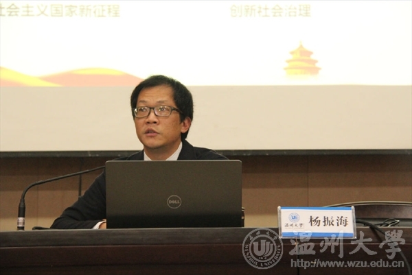 12月6日下午,必赢bwin线路检测中心在岩松堂雁山厅组织开展形势与政策课教学,学院党总支副书记杨振海为17级全体同学作“十九大报告精髓要义导读”报告。
