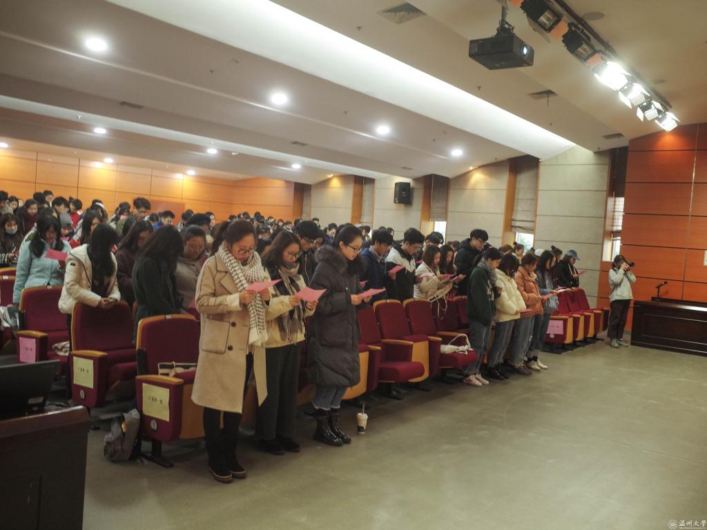 2018年1月10日下午,必赢bwin线路检测中心在雁山厅召开2017-2018学年第一学期考风动员大会,必赢bwin线路检测中心党总支书记张丽萍、副院长谢子静出席大会,17级全体同学参加会议,大会由学院党总支副书记杨振海主持。 张丽萍书记在动员讲话中重申了考风考纪的重要性和作弊的危害性,她强调学习在于平时的点滴积累,来不得弄虚作假,作弊不能弥补学习上的漏洞,而是一种自欺人人的行为。张丽萍书记还鼓励同学们认真备考,争取考出好成绩。她强调:“大学里的每一次考试都是接受考核认证自我的途径,加强考风建设营造公平的考试氛围,既是每个同学的愿望也是每个同学应该肩负的责任。所以希望同学们在这次考试中能诚信做人,亮出真实的成绩,展现真实的自己。”杨振海副书记根据学生手册相关条例告诫同学们一定不能碰这个底线,在考试过程中不仅仅要交出反映专业知识水平的考卷,更重要的是在考试中要交出诚信的品行之卷。 17级全体同学在学生代表的引领下宣誓,承诺端正考试态度认真复习积极备考。 学生处吕乐老师进行大学生文明修身考风考纪专题讲座。学生处吕乐老师通过精彩的演讲和亲切的互动,加深了同学们对考试作弊的危害的理解,相信同学们也一定会用真实的成绩证明自己的实力,成为一名诚实守信的大学生。 大会还总结了本学期学风考勤和晚自习考勤情况,与会领导对本学期优秀纪检委员进行了表彰。