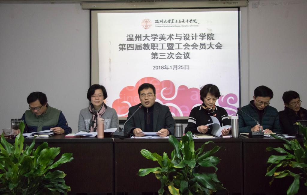 2018年1月25日下午,必赢官网在2B4001召开第四届教职工暨工会会员大会第三次会议。学院全体教职工参加了大会,会议由学院党总支副书记杨振海主持。