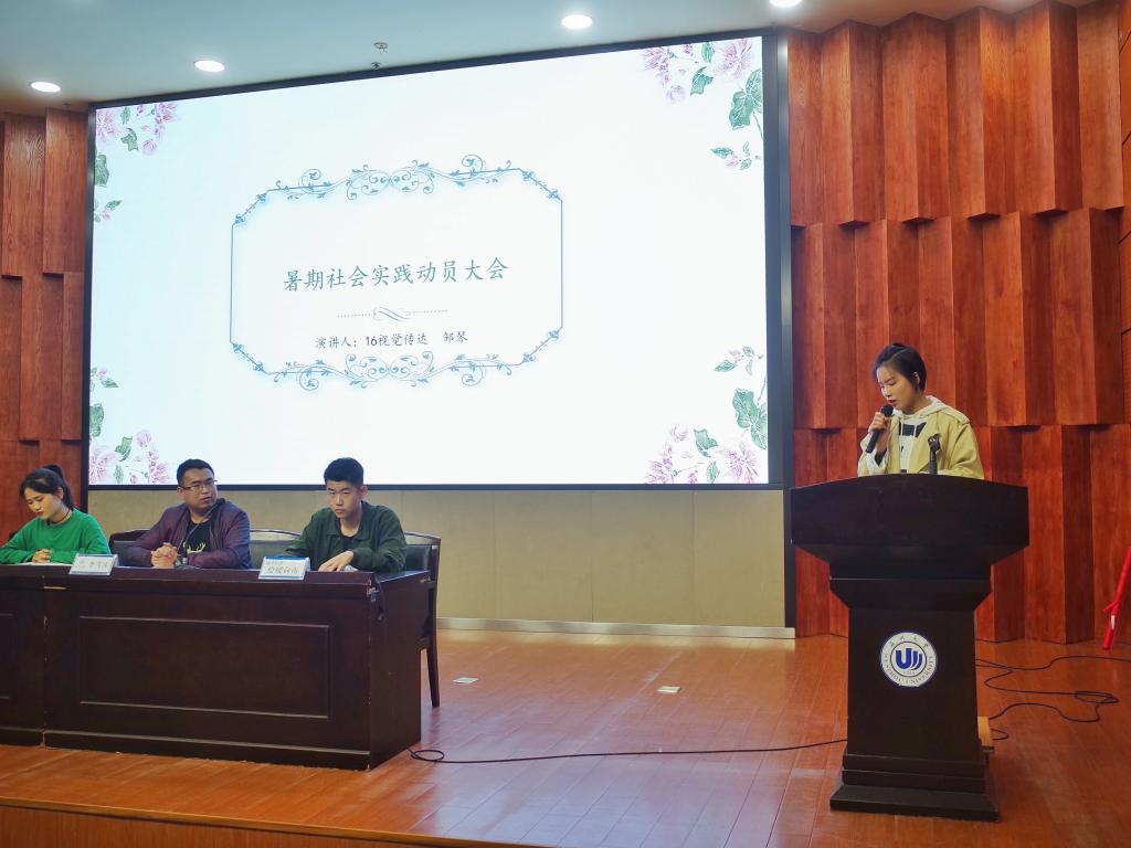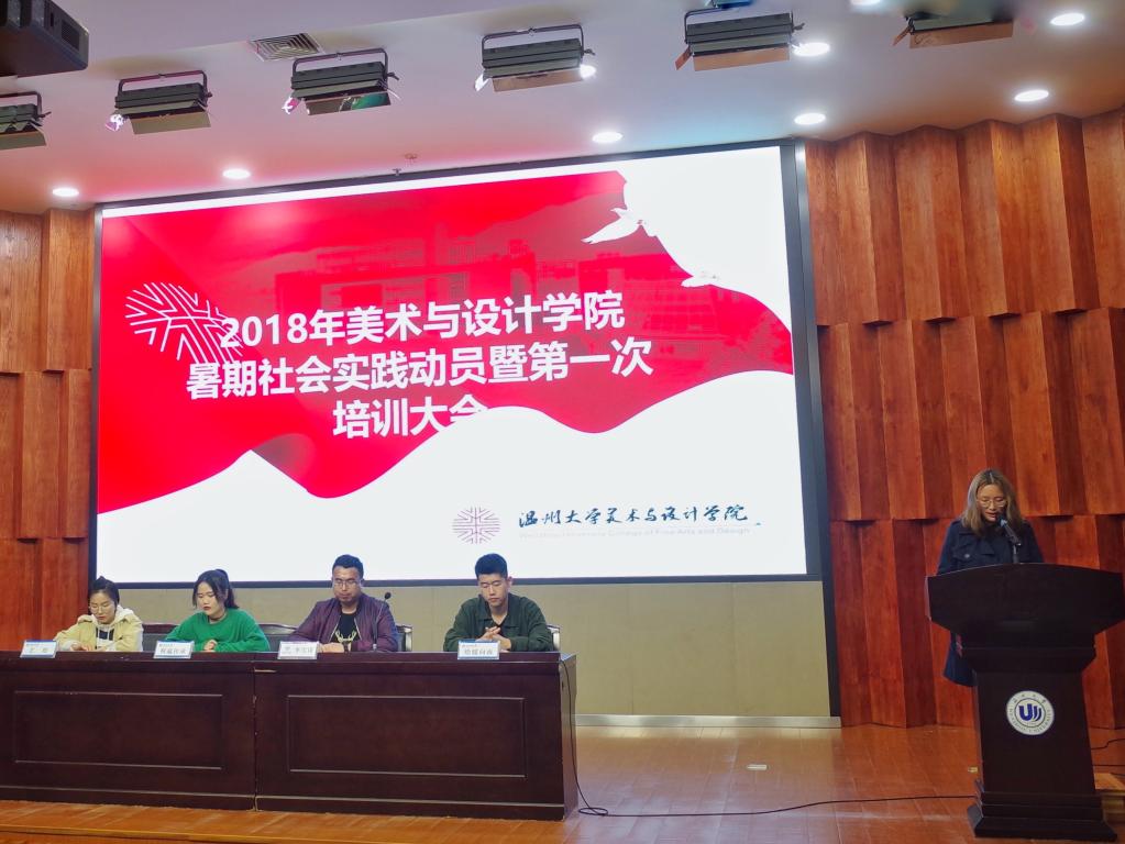 3月25日晚,必赢bwin线路检测中心暑期社会实践动员暨第一次培训大会于雁山厅举行,本次大会由美院团委学生会学术实践部主办,美院2017年优秀实践队长以及团学指导老师李雪涛出席了此次大会,参与本次动员会的成员还有大一全体同学。
