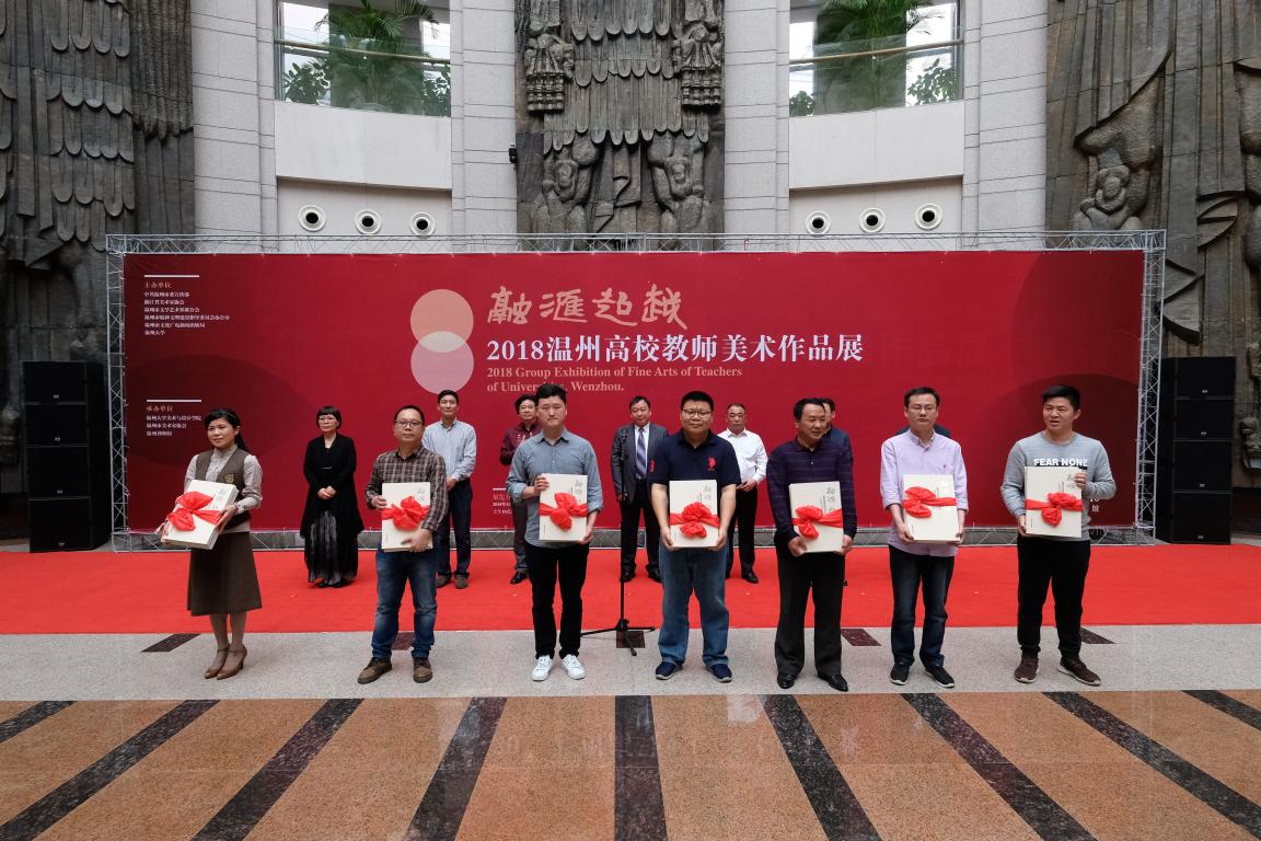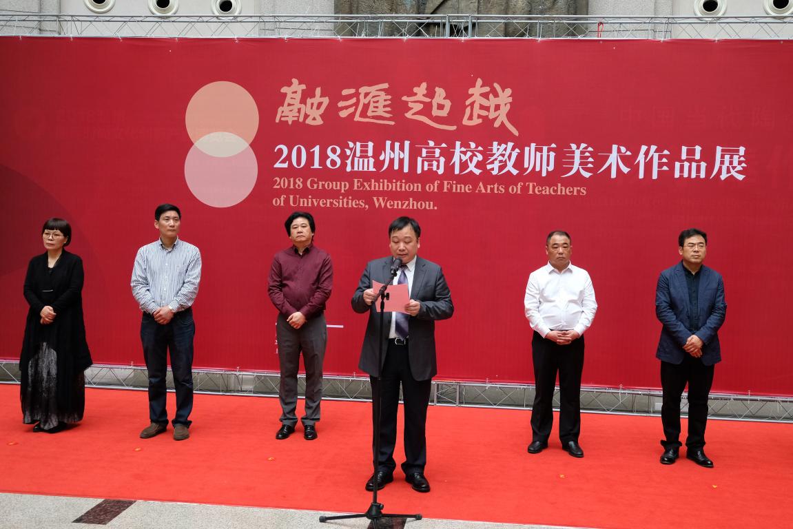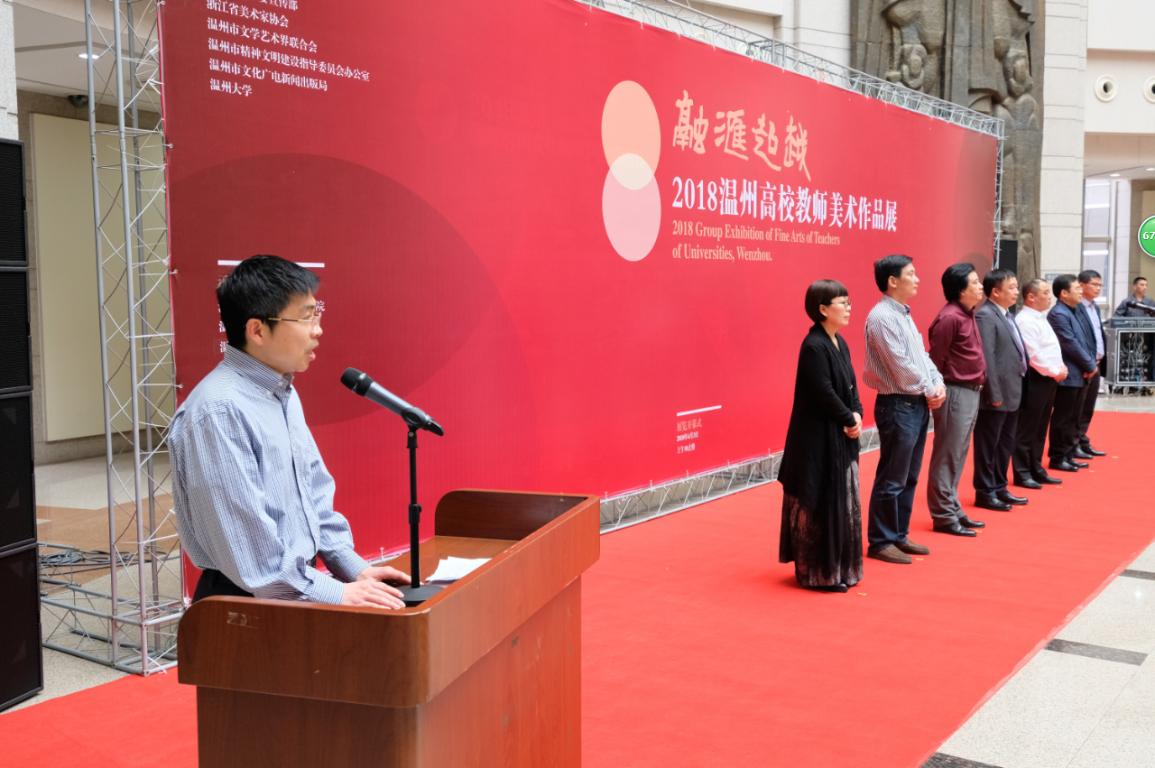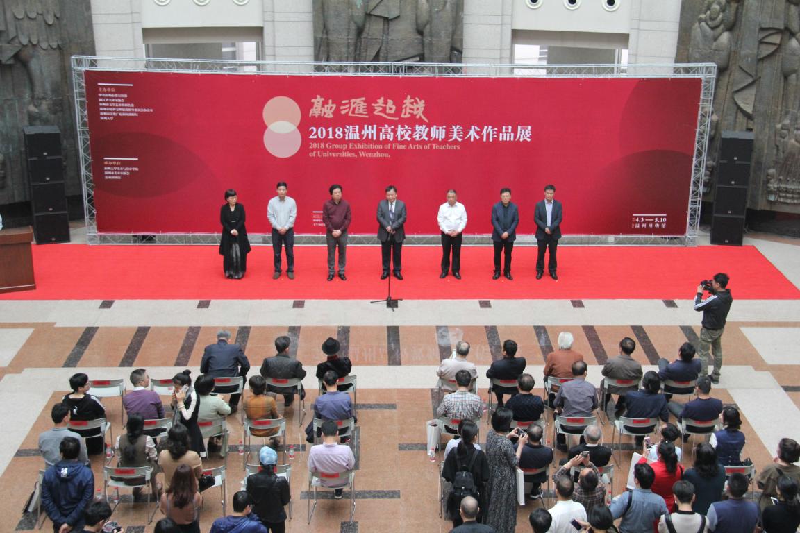 4月3日上午,“融汇超越”——2018温州高校教师美术作品展在温州市博物馆隆重开幕。出席开幕式的领导嘉宾有:必赢bwin线路检测中心党委副书记赵敏,中共温州市委宣传部副部长魏平生,浙江省文联副主席、温州市文联主席邹跃飞,温州市文联副主席、必赢bwin线路检测中心院长李运河,温州市文明办副主任余庆,温州市文广新局副局长李方喜,浙江省美术家协会副主席、温州市美术家协会主席蔡瑞蓉,特邀嘉宾还有原校党委书记陈艾华,市教育局高教处处长黄万统,另有叶玉昶、沈尧伟、钟式震、马亦钊、张如元、袁纲平、金松、陈钦权等老教授,美术家协会戴宏海、张成毕、陈旭海、李崇高等同仁,书法家协会汪廷汉、陈出新、陈胜武等同仁,书画院郑方伟、陈默、张真恺、林翼如等同仁,此外,学校老干部工作部部长陈慧、成人(继续)教育学院院长胡记芳等学校部门(学院)领导,必赢bwin线路检测中心党总支书记张丽萍,副院长谢子静、张晓剑,副书记杨振海,学院师生代表200余人参加了开幕式。群贤毕至,少长咸集 。