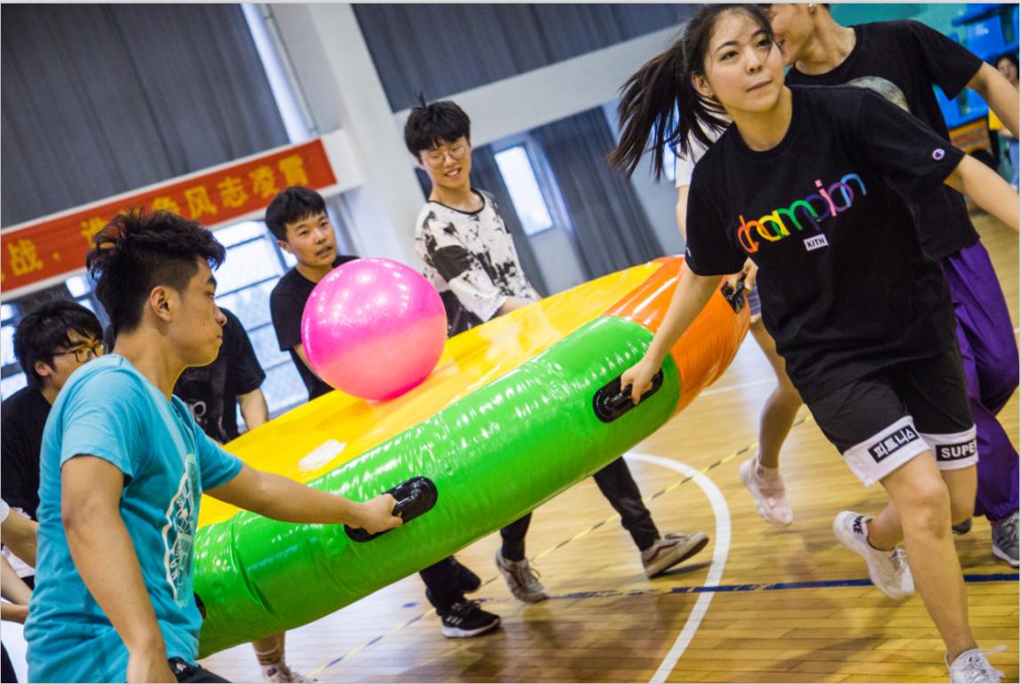 5月13日下午,美院2018春季趣味运动会在南校体育馆举行,由各班组成的13支队伍参加了比赛。