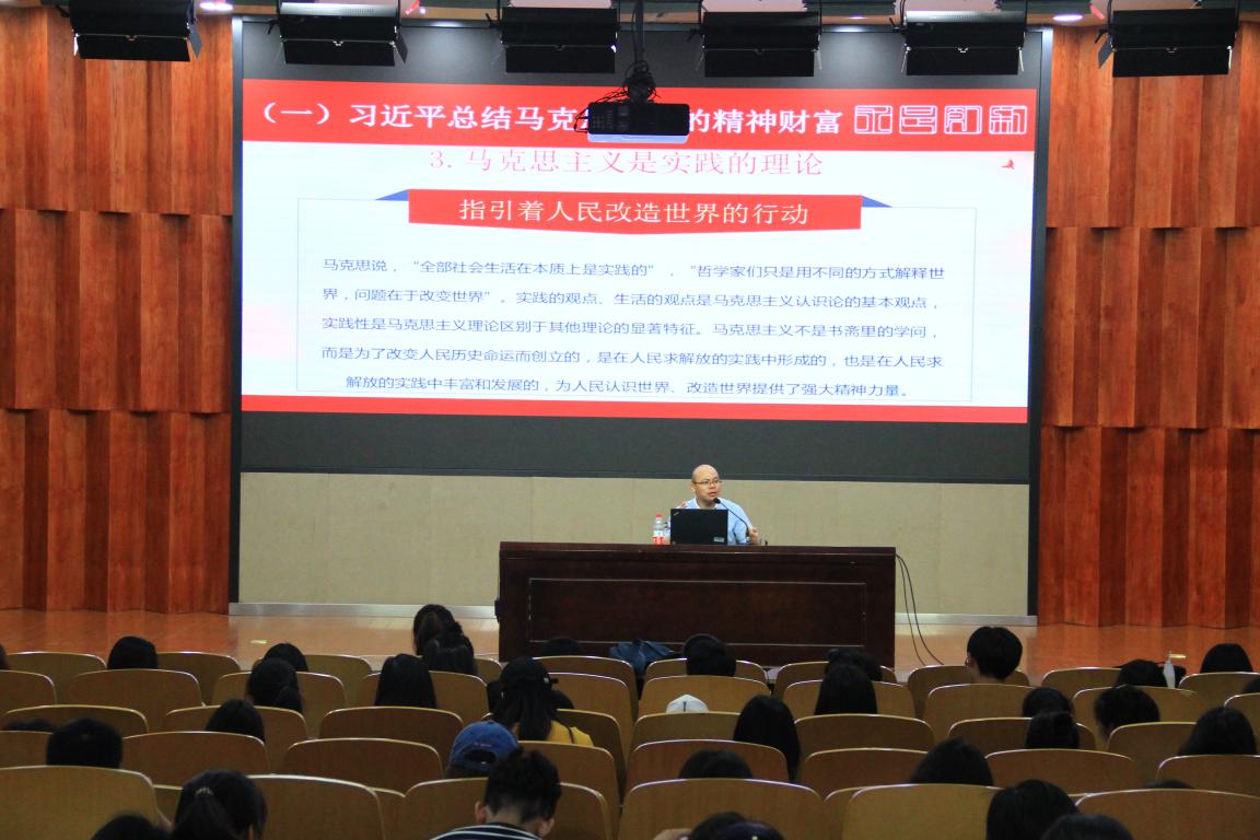 7月2日上午,必赢bwin线路检测中心在雁山厅开展本学期第二次形势与政策课,必赢bwin线路检测中心马克思主义学院副院长卓高生做题为“感受信仰的力量 高扬伟大的旗帜——学习贯彻习近平总书记在马克思诞辰200周年上的重要讲话”的形势与政策讲座。必赢bwin线路检测中心17级全体同学参加讲座。 卓高生老师从回到马克思、走进马克思、学习马克思三个方面进行解读。通过回顾马克思的一生,可以得出这样的结论:马克思的一生,是胸怀崇高理想、为人类解放不懈奋斗的一生;是不畏艰难险阻、为真理而勇攀高峰的一生;是为推翻旧世界、建立新世界而不息战斗的一生。回到马克思,需要重读经典,也要摒弃教条式的解读。走近马克思,需要辨识、辨析、辨明马克思主义,习近平总结马克思留下的精神财富是指出:“马克思主义是我们立党立国的根本思想。背离或放弃马克思主义,我们党就会失去灵魂、迷失方向。在坚持马克思主义指导地位这一根本问题上,我们必须坚定不移,任何时候任何情况下都不能有丝毫动摇”。纪念马克思诞辰200周年大会上,习近平主席高度评价了马克思的一生,并就学习和实践马克思主义提出9个方面的要求,为新时代坚持和发展中国特色社会主义进一步指明了前进方向。卓高生老师指出,在马克思诞辰200周年的今天,对马克思最好的纪念和告慰,对马克思主义最好的坚持和继承就是:在新时代我们要在坚持中发展、在传承中创新,不断开辟当代中国马克思主义、21世纪马克思主义新境界。