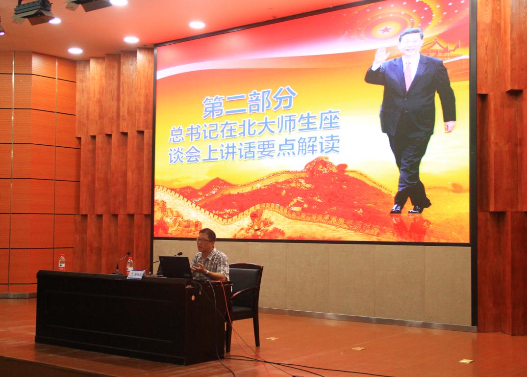 7月4日下午,必赢bwin线路检测中心在岩松堂雁山厅组织开展形势与政策课教学,学院党总支副书记杨振海为17级全体同学做“坚持立德树人培养时代青年 加快内涵发展建设高教强国——习近平总书记在北大师生座谈会上的讲话精神解读”报告。 杨书记报告分为三部分,第一部分是总书记莅临北京大学考察的简要回顾,第二部分是总书记在北大师生座谈会上讲话的要点解读,第三部分是学习总书记讲话精神要自觉增强五个自觉。杨书记指出,习近平总书记在北大师生座谈会上的讲话是当的十九大以来,总书记面向高等教育乃至整个教育战线发表的首次重要讲话,对新时代的高等教育工作做出了系统论述,具有很强的战略性、政治性、思想性和针对性,是习近平新时代中国特色社会主义思想的重要内容,是深化教育综合改革、办好社会主义大学的根本遵循,也是青年学生成长成才的行动指南。杨书记认为,总书记的讲话围绕“我们要培养什么样的人”“怎样培养我们需要的人”“青少年怎样成为这样的人”三个问题,分别从我国高等教育的一个根本任务、建设中国特色世界一流大学的三项基础性工作和对新时代青年的四点希望三个方面进行了深刻阐述。杨书记总结了学习总书记讲话精神要增强五个自觉,一要增强走中国特色社会主义道路的自觉;二要增强加快高等教育内涵式发展的自觉;三要增强高等教育服务国家和社会的自觉;四要增强高校加强和改进党的领导的自觉;五要增强青年大学生全面成长成才的自觉。 最后,杨书记勉励全体同学要不忘初心,牢记使命,关注时事政治,努力充实文化知识和专业技能,为实现中华民族伟大复兴的中国梦贡献青年大学生应有的力量。