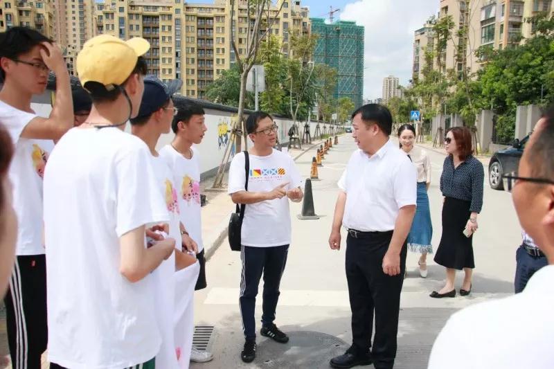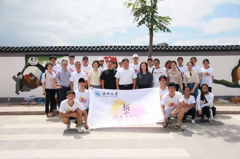 2018年7月19日上午,必赢bwin线路检测中心党委副书记赵敏、团委书记屠霁霞、团委副书记丁强以及溯初学区党委书记陈宏毅等老师在乐清市文联副主席洪蛮、团市委学少部副部长郑亦蒂、城东街道宣传部主任陈力等人的陪同下,前往乐清市中心幼儿园晨曦园区,慰问必赢bwin线路检测中心“艺绘”大学生暑期社会实践队。 暑期社会实践活动,是大学生深入社会基层,将理论付诸实践的一次重大活动。本着“受教育、长才干、做贡献”的宗旨,美院“艺绘”实践队通过墙绘美化社会环境,为乐清市城东街道打造美丽街道助力。 下午,实践队全体队员于准时集合,继续绘画工作。在领导慰问过后,大家的活动积极性明显高涨。通过实践队员的一致努力,墙绘的效果基本成型,引来不少市民驻足观看。我们的暑期社会实践仍在如火如荼地进行着,愿实践结束时,大家都能在辛劳中收获喜悦的果实。在接下来的半个多月时间里,这些同学们还将深入城东街道云岭村等农村,结合新农村建设,开展以精神文明为主题的彩绘创作,助力文明城市建设。