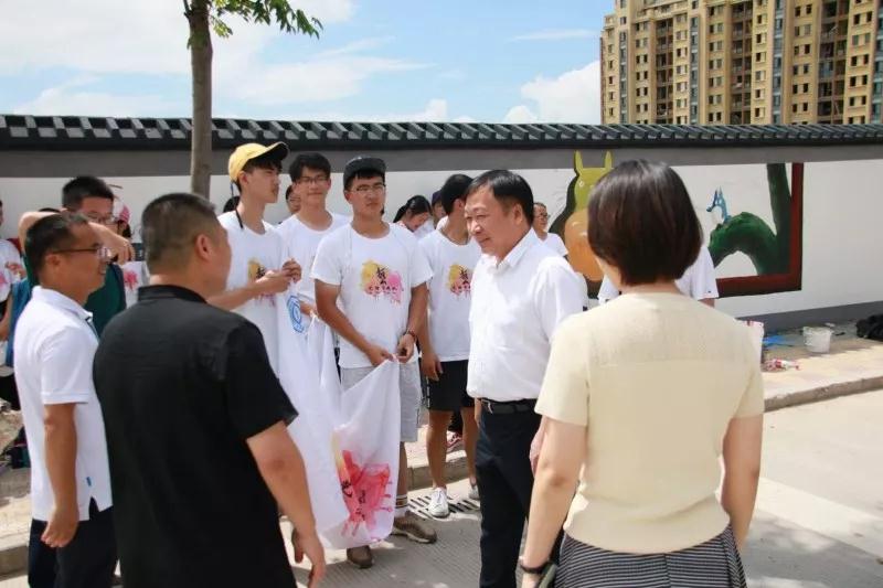 下午,实践队全体队员于准时集合,继续绘画工作。在领导慰问过后,大家的活动积极性明显高涨。通过实践队员的一致努力,墙绘的效果基本成型,引来不少市民驻足观看。我们的暑期社会实践仍在如火如荼地进行着,愿实践结束时,大家都能在辛劳中收获喜悦的果实。在接下来的半个多月时间里,这些同学们还将深入城东街道云岭村等农村,结合新农村建设,开展以精神文明为主题的彩绘创作,助力文明城市建设。