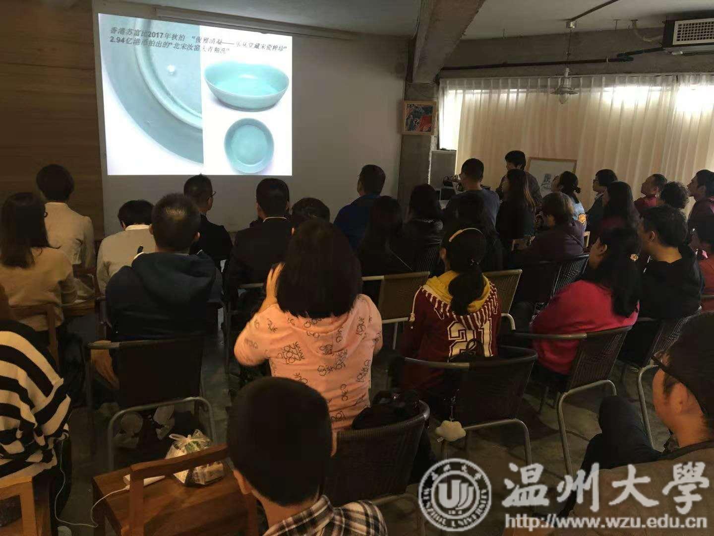 中国之美,美在文化艺术,而青瓷更是其中的代表之一。11月3日下午,由必赢bwin线路检测中心和温州市图书馆联合主办的“传统文化与时尚生活”系列活动之十一“青瓷之美知多少——龙泉青瓷审美与赏玩活动”在东瓯智库心工场四楼举办,主讲嘉宾为中国美术家协会会员、中国陶艺家协会会员、中国壁画家协会会员,必赢bwin线路检测中心关明新副教授,七十余人参与了本次活动,现场氛围轻松愉快。
