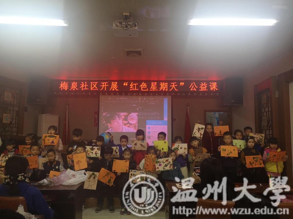12月1日,在这新的一月的第一天,又是一个周六,梅泉社区文化礼堂再度因美院“艺家人”志愿者的到来座无虚席。小朋友们在这里上课时都自然而然地与上几节课熟识的志愿者哥哥姐姐们结对坐下,静候今天的课程开始。
