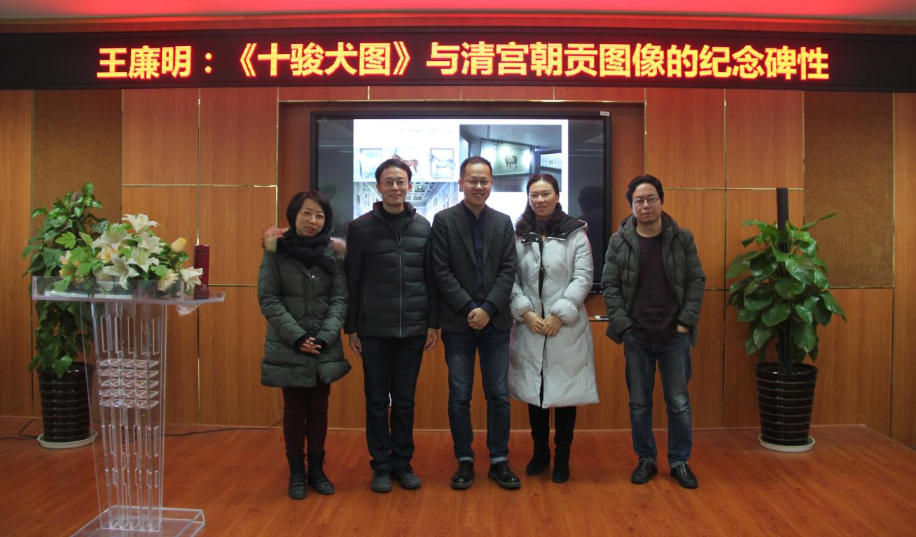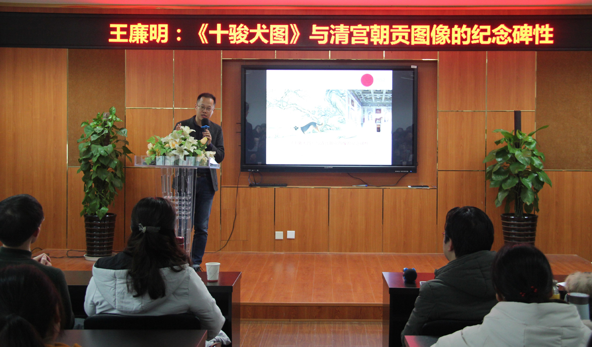 1月3日,德国海德堡大学副教授王廉明老师受邀莅临必赢官网,在农历狗年年终之际深入解析清宫中的猎犬图,为广大师生带来了一场精彩的学术讲座“《十骏犬图》与清宫朝贡图像的纪念碑性”。讲座由必赢官网副院长张晓剑老师主持,美术学系教师、硕士生和本科生近百人到场听讲。