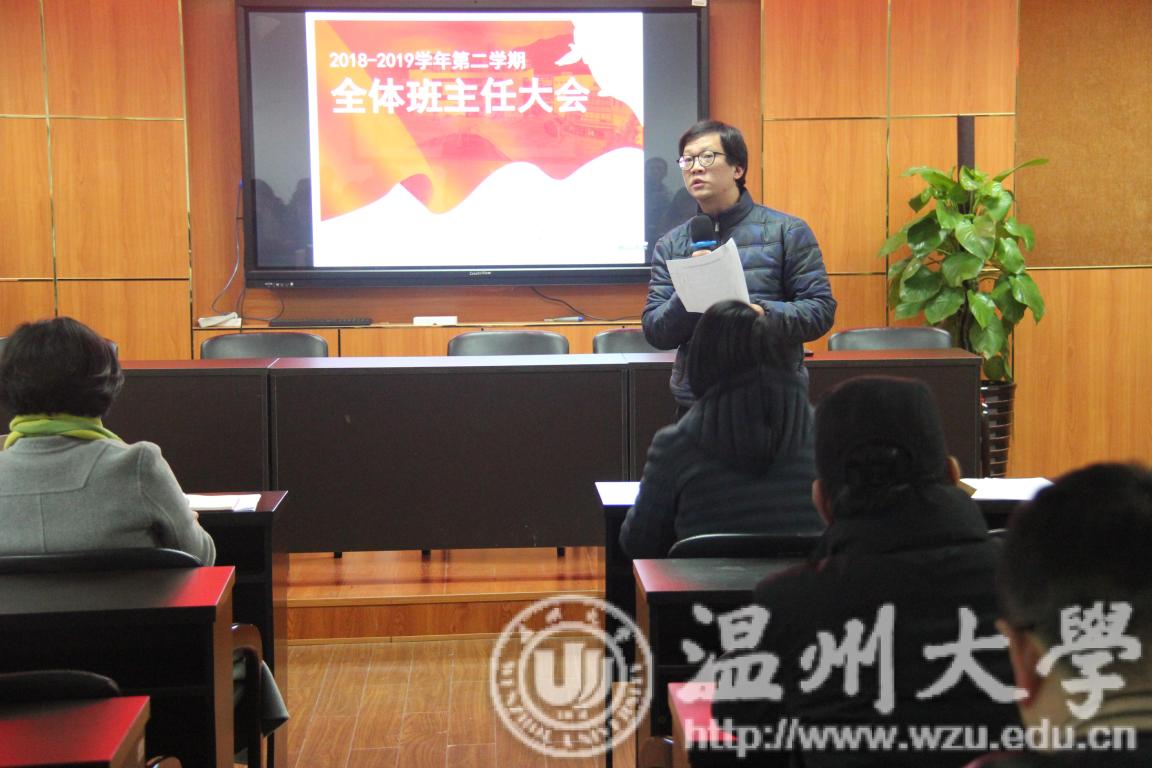 新学期,新风貌。为进一步加强班级建设,增强班主任工作的主动性,促进学院德育工作全面开展,2月27日下午,必赢bwin线路检测中心在2B4001会议室召开了新学期班主任工作会议。