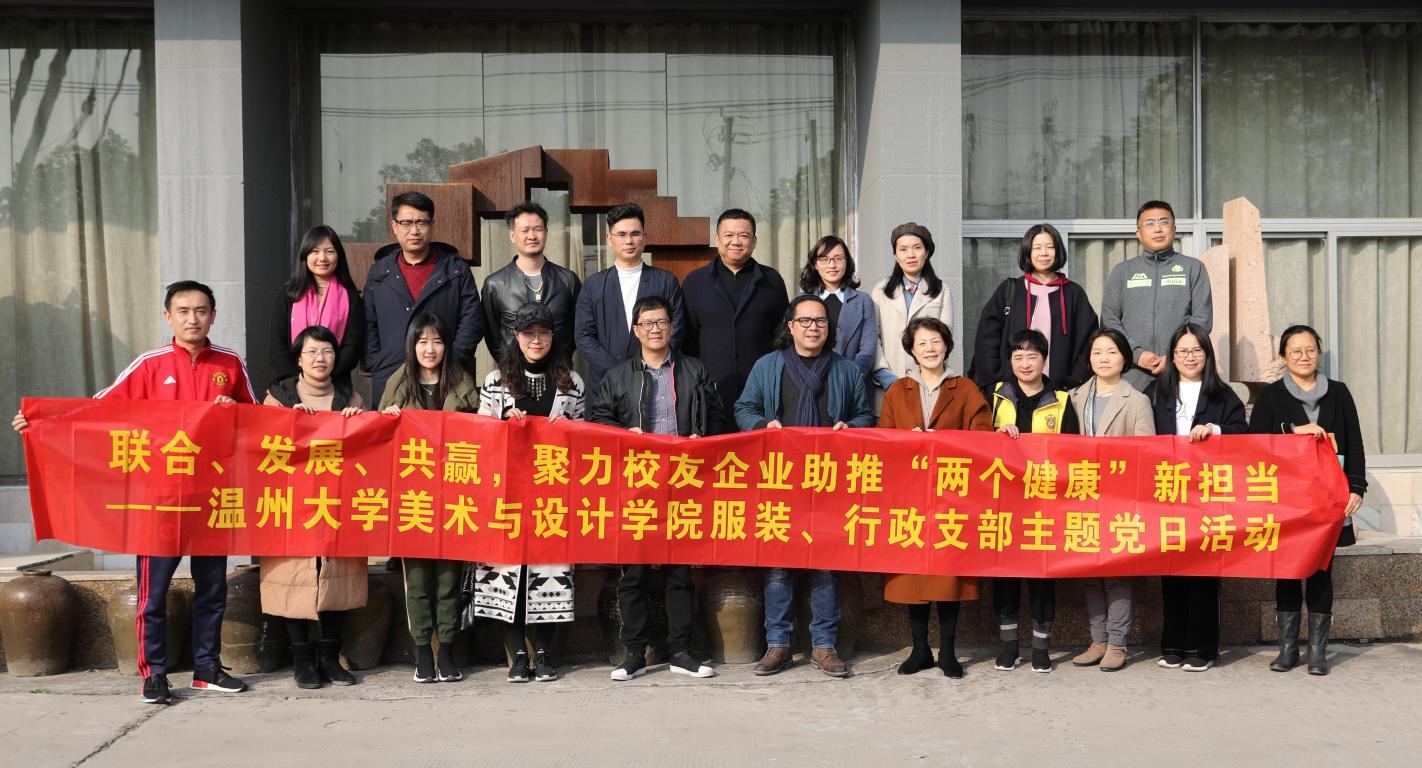3月11日,必赢官网服装、行政支部赴校友企业亨嘉艺术中心,联合开展“温州创新新时代‘两个健康’先行区”主题党日活动,18名教师党员与校友企业家、设计师们面对面,共同谋划校企联合发展新篇章。