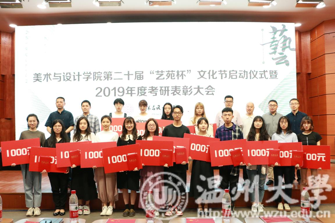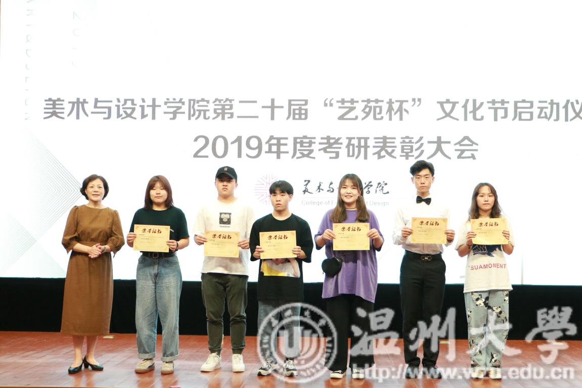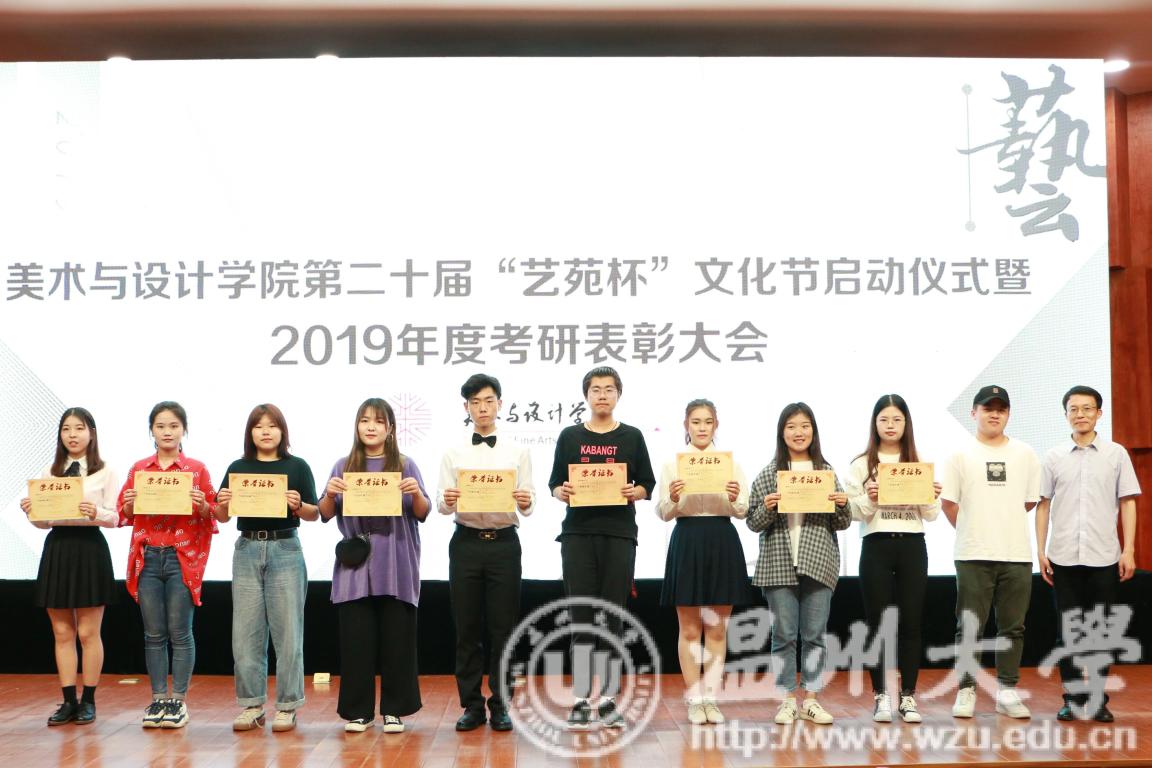 2019年4月24日下午,必赢bwin线路检测中心第二十届艺苑杯文化节启动仪式暨2019年度考研表彰大会在岩松堂雁山厅顺利举行。莅临本次启动仪式的领导有校党委宣传部副部长冯方盛,校教务处副处长胡瑜,校学工部副部长、学生处副处长高红星,校就业处副处长应中,校团委副书记魏一,超豪学区党委副书记李祖祥,必赢bwin线路检测中心院长李运河,党总支书记张丽萍,副院长张晓剑。参加本次活动的还有必赢bwin线路检测中心17、18级同学。启动仪式由美院党总支副书记杨振海主持。 本届“艺苑杯”文化节的主题“艺梦为马·不负韶华”源自海子的著名诗篇《以梦为马》,寓意美院学子将艺路梦想作为前进的方向和动力,在有限的年华里为梦想去拼搏。系列活动包括纪念“五四运动100周年”;传承中华优秀传统文化;“融艺优品”创新创业;“艺家人”青年志愿服务;“毕业季”;纪念“建国70周年”等6大篇章共34个子活动。 启动仪式的开场是“五四”主题诗朗诵《青春的火焰》。充满爱国激情的诗歌表达了对100年前五四运动的深切赞颂,激昂的文字让同学们更深切体会到了五四运动的爱国主义精神内涵,进一步增强了同学们的时代责任感和使命感。 张丽萍书记为启动仪式致辞。张书记回顾了“艺苑杯”文化节自2000年创办以来不断发展壮大的历程。“艺苑杯”文化节不仅营造了积极向上、健康文明的校园文化氛围,更成为同学们在实践中锻炼自我成长才的重要平台。张书记鼓励同学们积极参加到“艺苑杯”文化节各项活动中,用激情去创造,用行动去证明,用精品去展现,共同谱写青春绚丽多彩的乐章。 仪式最后,与会领导上台共同启动必赢bwin线路检测中心第二十届“艺苑杯”文化节。 会议第二项议程是学风表彰。大会宣读了2018年度必赢bwin线路检测中心“五班十星”名单和2019年度必赢bwin线路检测中心“考研奖学金”获得者名单。2017-2018学年校级学习标兵陈晨,2019年度美院“考研奖学金”获得者代表15服工班杨怡洁、15美术学一班聂枭雄分别做学习和考研经验分享。2019年必赢bwin线路检测中心共有16人考取研究生,16人中有5人被浙江理工大学录取、6人被必赢bwin线路检测中心录取、1人被杭州师范大学录取,还有4人被国外的大学录取。与会领导为他们颁发了奖状和证书并合影留念。 随后,李运河院长作考研动员讲话。他指出了本科阶段学习与研究生阶段学习的不同,并引用毛泽东、曾国藩、习近平总书记等名人轶事鼓励同学们以考研成功的学长学姐为榜样,树立以学习为本的理念,任何时候都不要放弃学习,多读书,读好书,勤实践,多游学,珍惜大学时光,珍惜青春韶华,学好专业知识,实践专业技能,强健体魄,刚强意志,努力奋斗实现人生梦想。 最后,为迎接祖国70华诞,全体师生手中挥动国旗,共同献唱《我和我的祖国》,大会圆满结束。