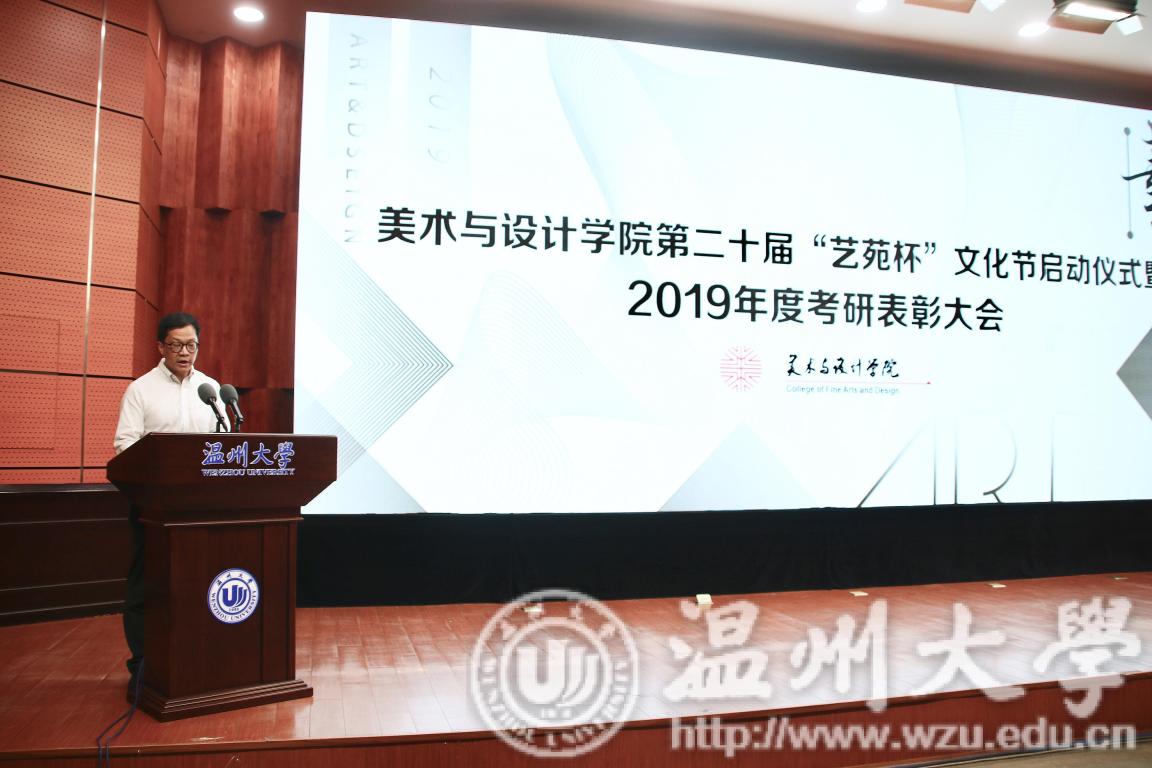 2019年4月24日下午,必赢bwin线路检测中心第二十届艺苑杯文化节启动仪式暨2019年度考研表彰大会在岩松堂雁山厅顺利举行。莅临本次启动仪式的领导有校党委宣传部副部长冯方盛,校教务处副处长胡瑜,校学工部副部长、学生处副处长高红星,校就业处副处长应中,校团委副书记魏一,超豪学区党委副书记李祖祥,必赢bwin线路检测中心院长李运河,党总支书记张丽萍,副院长张晓剑。参加本次活动的还有必赢bwin线路检测中心17、18级同学。启动仪式由美院党总支副书记杨振海主持。