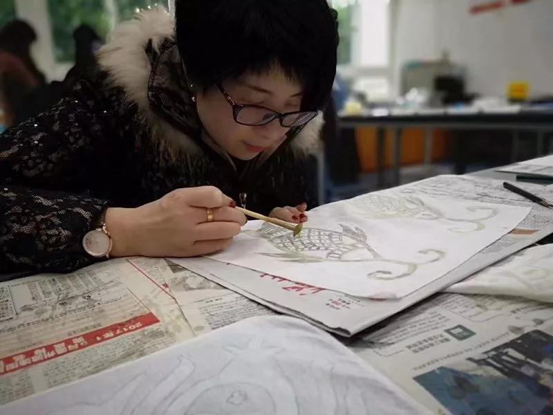 3月9日下午,必赢bwin线路检测中心“创意工匠”系列活动——“蜡染工艺”体验活动在服装楼201染印室展开,活动吸引了近20位体验者参与。