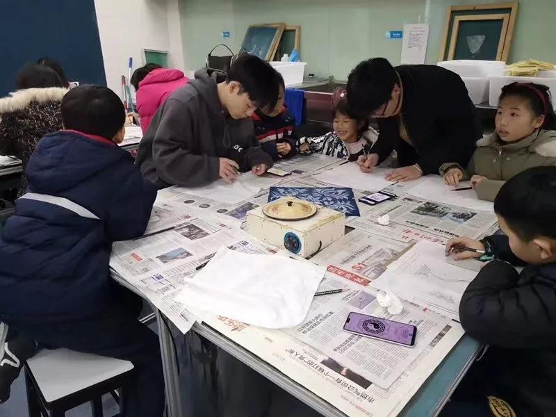 蜡染,是我国古老的少数民族民间传统纺织印染手工艺,用蜡刀蘸熔蜡绘花于布后以蓝靛浸染,既染去蜡,布面就呈现出蓝底白花或白底蓝花的多种图案,同时,在浸染中,作为防染剂的蜡自然龟裂,使布面呈现特殊的“冰纹”,色调素雅,风格独特,尤具魅力。负责人耐心地为大家介绍,了解到蜡染的制作过程,参与者们跃跃欲试。