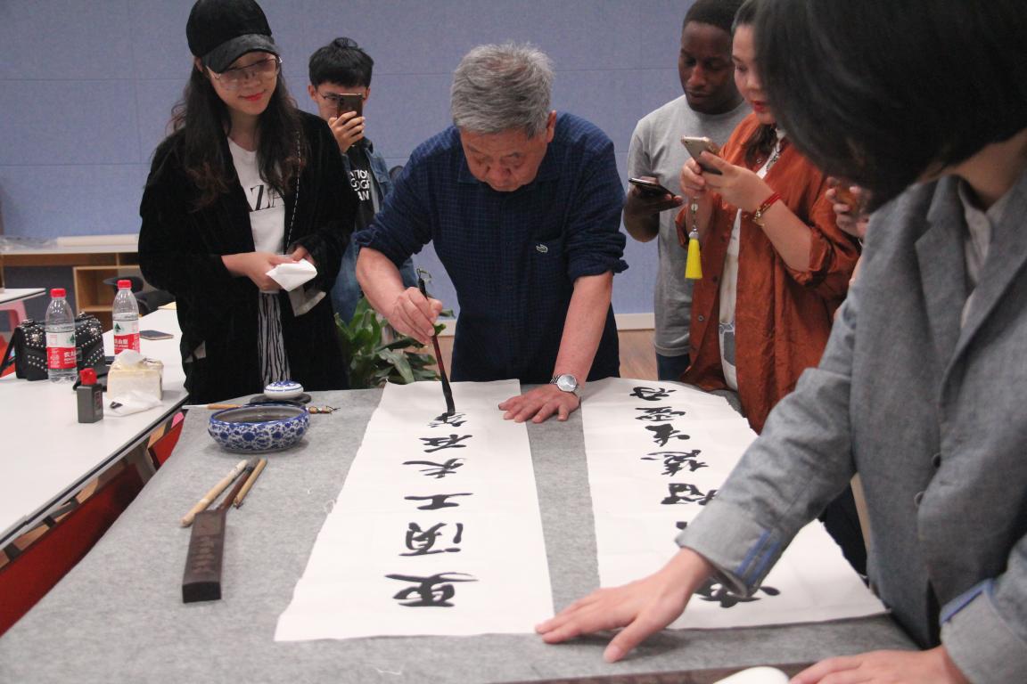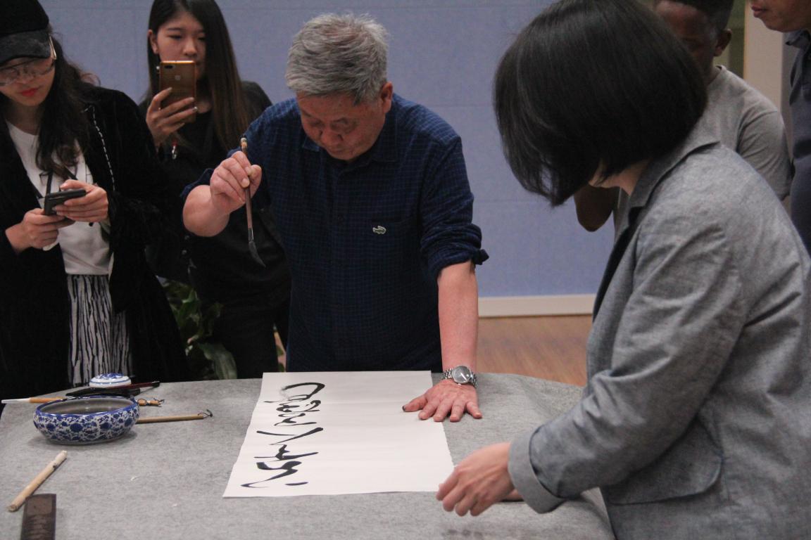 讲座结束后,马亦钊老师现场挥毫泼墨,创作出一幅精美的书法作品赠送给必赢bwin线路检测中心,李运河院长和张丽萍书记接受赠送并做答谢。