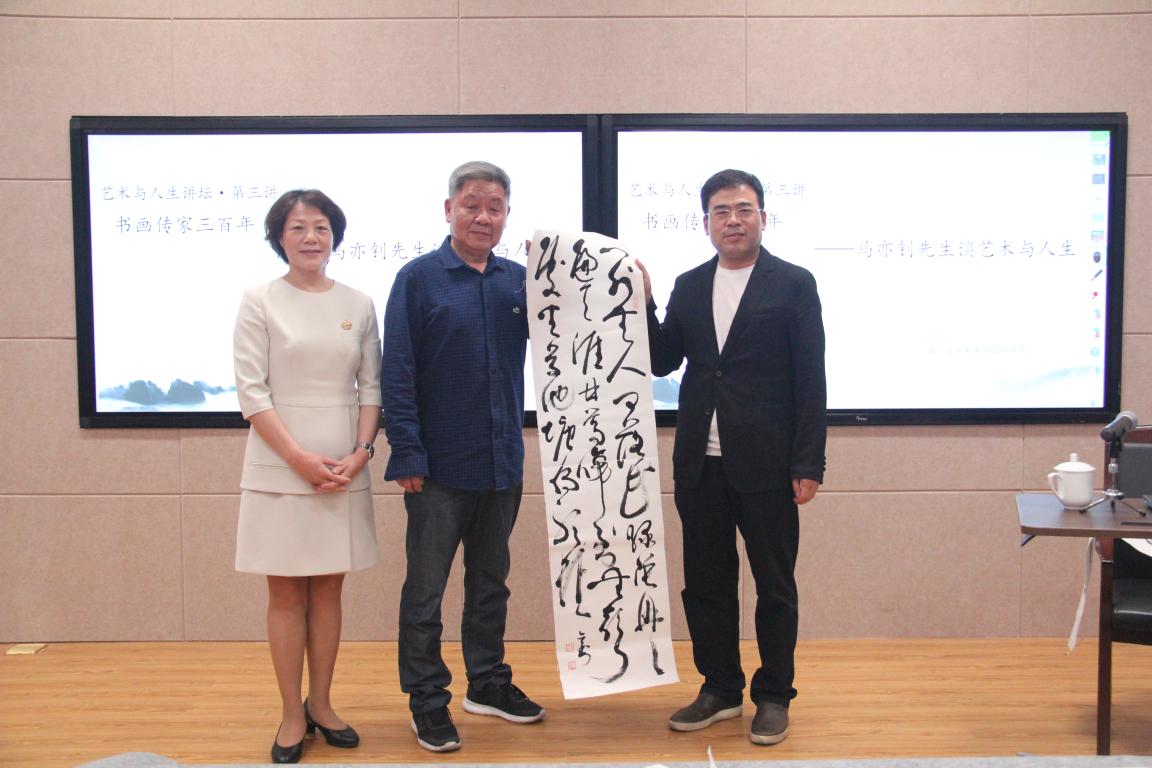 5月22日下午,由必赢bwin线路检测中心党委宣传部与必赢bwin线路检测中心联合创办的《艺术与人生》大讲坛第三期在岩松堂叶适厅举行。本期讲坛由必赢bwin线路检测中心退休教师马亦钊教授主讲。必赢bwin线路检测中心院长李运河、党总支书记张丽萍、副院长谢子静、副书记杨振海以及学院部分师生参加本次活动,同时来自学校各部门与单位的教师代表、留学生代表也来到现场。本期讲坛由副院长张晓剑主持。 马亦钊老师是原必赢bwin线路检测中心艺术设计系主任,在必赢bwin线路检测中心工作多年,见证了学院的发展壮大,培养了大量的书画人才,可以说“桃李满天下”。现担任浙江省文史馆馆员、西冷印社社员、中国书法家协会理事、温州市书法家协会顾问等职。作品多次入选国内外重大展览并在报刊发表,被收入书法篆刻作品专集,出版《马亦钊书法篆刻集》。 马老师出身“书画传家三百年”的马氏家族,马老师娓娓道来,讲述了家族的传奇。百里坊马氏家族,自明末清初以来,十几代人不懈砥砺,文风昌盛,业绩惶惶,蜚声国内外。其中马亦钊老师的祖父马孟容、叔公马公愚昆仲最为出类拔萃,他们深受文艺界前辈蔡元培、吴昌硕等欣赏,被人誉为“马氏双璧”,是后期海派文化的杰出代表。 马老师分享了马家收藏的马蔚霞的行书对联、马孟容的墨蟹作品、马公愚的楷书《正气歌》、朱自清致马公愚函、马公愚致马亦钊函、马亦钊行书手卷《月朦胧,鸟朦胧,帘卷海棠红》等作品背后的故事。透过这些作品和故事,我们感受到的不仅仅是艺术修养的传承,更重要的是精神境界、家国情怀和民族气节。 “书画传家三百年,一脉相承到如今”作为温州文化家族世代传承的典型,马家也世代致力于推动家乡文化教育发展。透过马家“学有所长服务社会”的家风家训以及家族文化传承的故事和心得,师生们体会到的还有其中传递着的生生不息的“传家风、讲文化、铸温州气节”的人文精神。 讲座结束后,马亦钊老师现场挥毫泼墨,创作出一幅精美的书法作品赠送给必赢bwin线路检测中心,李运河院长和张丽萍书记接受赠送并做答谢。 书画传家三百年 温州马氏家族传家宝登陆央视(视频)