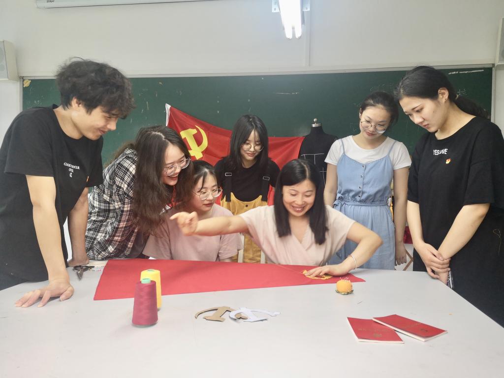 6月27-28日,学院拼布工作室学生在服装与服饰设计专业马俊淑老师指导下,手工制作党旗,献礼建党98周年。