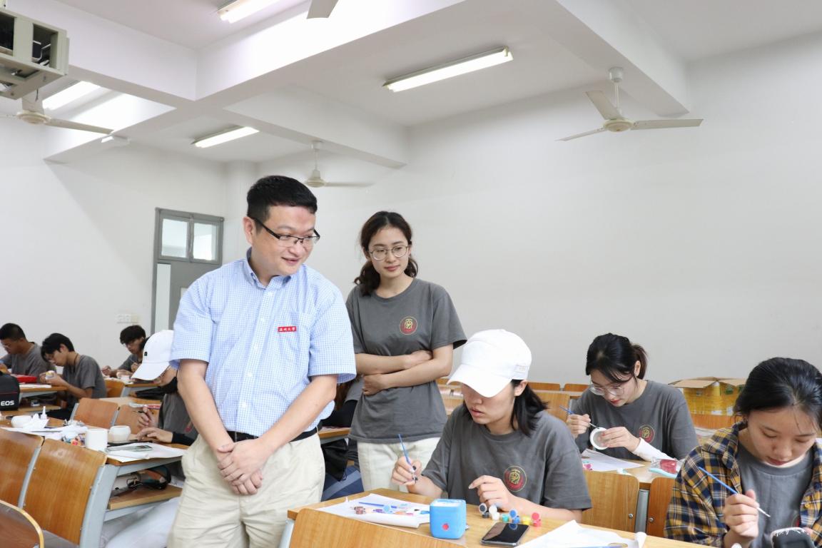 2019年7月19日上午9时许,必赢bwin线路检测中心副院长顾任飞和学生科辅导员张佳慰问了正在美院制作手工义卖品的“魅力工艺”暑期社会实践队。