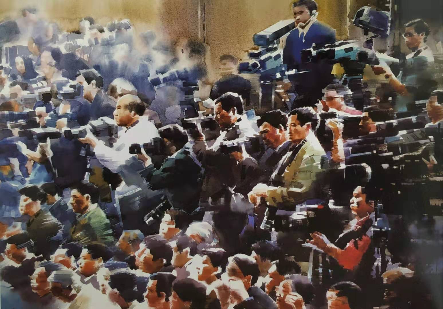 昨天,天朗气清,惠风和畅,美院17美术师范1班、18美术师范1、2、3共4个班级学生在蔡可群老师、陈伟老师、黄良老师的带领下,于上午9时乘校车到市府路温州博物馆参观了“与温州同行——庆祝人民政协成立70周年美术书法作品展”。 开幕式现场 展厅气象清新,参观者络绎不绝。简短的开幕式后,师生们漫步其间,三五成群,认真观摩点评,于上午11时准时离场返校,切身感受到温州本土文化的熏陶,收到了良好的实地观摩学习效果。本院蔡瑞蓉、谢子静、蔡可群、李利民、陈伟、陈旭海等老师各有作品入展。 学生观摩 蔡瑞蓉:《守望的形式》综合材料 李利民:《聚焦中国》水彩作品 陈伟:《镜像观者,行者》木刻版画 陈旭海:《农历二月初一.日记》版画 谢子静:《款款飞回夕照斜》中国画 蔡可群:《柿子正红》油画