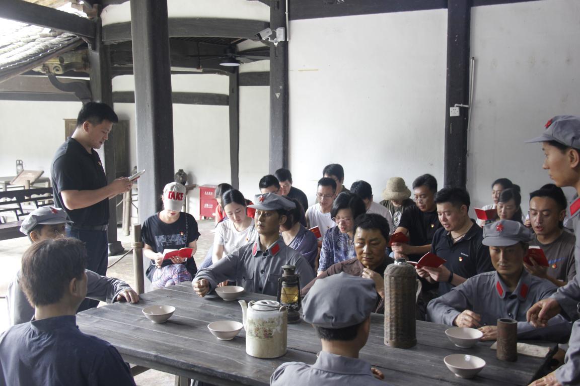 在红十三军旧址的会议室,在叶正飞书记的带领下,全体党员共同诵读《党章》总纲部分。诵读中,党员们严肃认真,声音洪亮有力,充分表达了对党章的尊崇和敬畏之心。最后,叶正飞书记以学习省委第十四届七次全体(扩大)会议精神为题为全体党员上专题党课,叶正飞书记指出,此次全会是贯彻落实习近平总书记赋予浙江“努力成为新时代全面展示中国特色社会主义制度优越性的重要窗口”新目标新定位召开的一次重要会议。全院党员教师要深刻领会把握4个维度的重要详述、6个方面“着力点”的指示要求、10个方面“重要窗口”的丰富内涵和13项“重大标志性成果”的目标任务,增强“重要窗口”意识,树立“重要窗口”担当,切实把贯彻落实省委全会精神与学院中心工作相结合、与主责主业相融合。