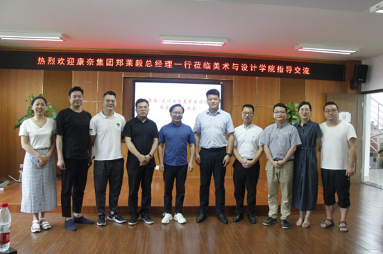 7月4日下午,康奈集团总经理郑莱毅、副总经理吴圣能及集团党委书记蔡发荣一行来必赢官网交流座谈,学院党委书记叶正飞、副院长顾任飞、设计学学科带头人李运河及专业教师出席座谈会。
