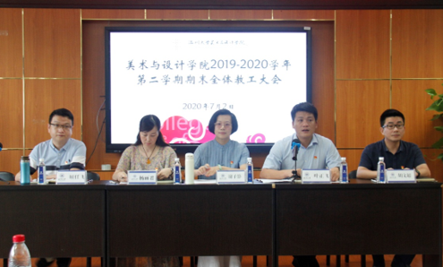2020年7月2日,在2B4001会议室召开必赢官网2019/2020学年第二学期期末全体教职工大会,学院班子成员和全体教职工出席会议。会议由学院党委书记叶正飞同志主持。 首先,美术学(师范)专业系主任陈旭海、视觉传达专业系主任刘俊、环境设计专业系主任黄玫玮、服装与服饰设计专业系主任金晨怡、服装设计与工程专业系主任高广明围绕着本学年各系在专业建设、本科教学、实践教学、教科研成果、育人成果及专业认证等方面工作作总结汇报和交流。 随后,叶正飞书记、杨丽君副书记、胡文超副院长、顾任飞副院长分别针对下阶段各分管工作作重点部署和安排。 最后,谢子静院长传达学校一流本科教育大会会议精神、部署十四五发展规划编制工作,并作总结讲话。她指出,必赢bwin线路检测中心要高水平地推进一流专业建设,高质量地推进一流课程建设,围绕着学校一流本科教育工作科学编制十四五发展规划并开展工作。学院全体教职工共同参与,共同担当,凝心聚力,共同推进学院各项事业发展。
