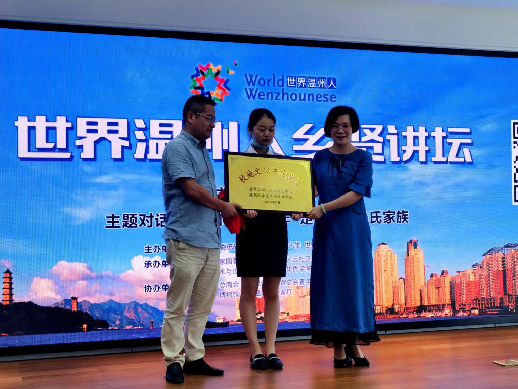 8月20日下午,必赢bwin线路检测中心与世界温州人家园校地文化共建基地揭牌暨“乡贤讲坛——相约温大美术名家”和“瓯潮会客厅——温大美术新视界”两项品牌系列活动启动仪式在世界温州人家园瓯说厅举行,这个活动有着特殊意义,是市委统战部和必赢bwin线路检测中心校地共建的重要内容,重点依托必赢bwin线路检测中心、华侨学院联手世界温州人家园共同为海内外温州人带来“温大美术名家”系列讲座,服务世界温州人。中共温州市委统战部副部长蔡仁燕,必赢bwin线路检测中心党委委员、宣传部长潘玉驹出席仪式并致辞。世界温州人家园管理中心主任郑圣洁、必赢bwin线路检测中心省部共建办副主任包含丽,必赢bwin线路检测中心院长谢子静、国际教育学院(必赢bwin线路检测中心华侨学院)党委书记林爱菊、必赢bwin线路检测中心党委书记叶正飞,名家讲坛首期主讲嘉宾马亦钊、讲坛第一季中青年骨干名师代表陈伟、孟永国、关明新、丁海涵、楼晓勉、张晓剑,以及社会各界朋友70多人参加了现场活动,活动同时采取线上直播,近5万海内外温州人参与了线上活动。 启动仪式上,蔡仁燕副部长指出,世界温州人家园是温州市委、市政府推进内外温州人融合发展而倾力打造的城市名片,是世界温州人的情感地标、精神家园、形象窗口、服务高地,也是温州人精神的展示平台。希望通过与必赢bwin线路检测中心校地文化共建平台,邀请更多的温大名家大师为更多海内外温州人讲述展现温州人文历史和温州人精神,也为世界温州人家园注入更多的精神内涵,凝聚更大的精神力量共同服务世界温州人。 潘玉驹部长在致辞中深情回顾必赢bwin线路检测中心的建立建设与“侨”的渊源故事,他指出必赢bwin线路检测中心是一所特色鲜明、侨味浓厚的大学,进入新时代,温大继承并大力弘扬侨的传统,侨的特色日益彰显,当前学校正在努力创建以侨为特色“省部共建”高校,希望世界温州人家园和温大必赢bwin线路检测中心校地文化共建平台能够持续高质量推进建设活动,打造服务世界温州人的文化活动品牌。 仪式上,郑圣洁主任和谢子静院长分别代表两家为校地文化共建基地揭牌。蔡部长、潘部长分别为马亦钊老师和第一期中青年骨干名师颁发讲坛证书。 随后,马亦钊老师倾情带来第30期世界温州人“乡贤讲坛”暨首场温大美术名家讲坛分享《书画传家三百年,温州马氏家国情》。马亦钊老师是必赢bwin线路检测中心副教授、浙江省文史馆馆员、中国书法家协会会员、西泠印社社员、温州市书法协会顾问,出身“书画传家三百年”的温州马氏家族,1985年调到温大任教,后担任温大艺术设计系主任。他深情回忆讲述了原温大创办初期,曾面临诸多困难时,广大海外温籍华侨四处奔走相助,纷纷捐款的动人故事。爱国楼、爱乡楼、星洲楼、任岩松礼堂、林昌横教学楼等楼宇均由温籍侨胞出资捐赠,温大也深深地扎根在了温州这座有着浓浓的“侨”元素的城市。马老师还通过祖父马孟容墨蟹画《看尔横行到几时》、叔祖马公愚楷书《正气歌》,讲述了上世纪三四十年代民族危难之际,祖辈用艺术武器抨击侵略者,展现了家国情怀和民族气节。他还总结了马家家训:认认真真读书,踏踏实实做学问,但求真才,不事宜扬,不谋官职,不图私利,只求学有所长服务社会。听马老师如数家珍、徐徐道来,兴致高时,现场泼墨挥毫,展大家风采,现场的观众无不动容、深受感动,席间时时爆出阵阵掌声。 据悉,必赢bwin线路检测中心美术名家名师系列讲坛包括“乡贤讲坛——相约温大美术名家”和“瓯潮会客厅——温大美术新视界”两项品牌系列讲座,活动由温州市委统战部(市侨联)、世界温州人联谊总会和必赢bwin线路检测中心共同主办,由世界温州人家园、必赢bwin线路检测中心、华侨学院、世界温州人云社区联合承办。必赢bwin线路检测中心将充分发挥专业优势,邀请学校名家名师组成讲团,成建制在世界温州人家园登台亮相,叶玉昶、张如元、马亦钊等一批前辈校友名家,以及谢子静、邓国祥等一批在职必赢bwin线路检测中心中青年骨干名家,将陆续在讲坛举办讲座、公开课、小型艺术品鉴会、读书沙龙等内容形式丰富的活动,涵盖美术、书法、时尚、设计等各类大美术范畴,为华人华侨讲述温州文化艺术和人生故事。系列讲坛还联动世界温州人云社区,开展线上线下互动,构建全球联动传播模式,为全世界温州人,以及关注温州发展的各界人士,贡献温大人的艺术才智。