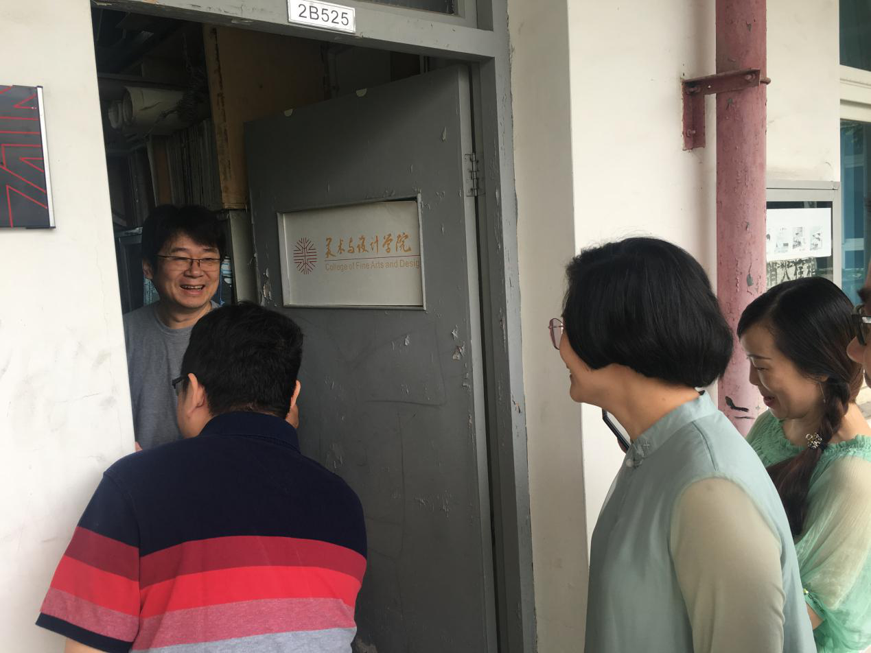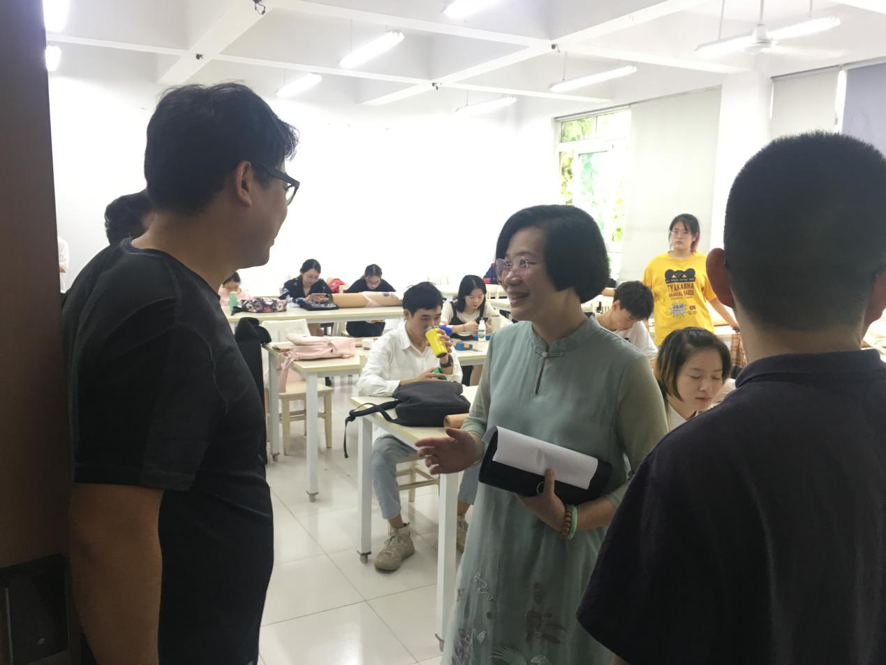 周四上午校领导潘玉驹、部门领导李密、校督导袁建国、美院领导谢子静、胡文超、美院教务科黄呼尔励,听了18美师3班《美术概论》张晓剑老师的课,张老师的课程幽默风趣有内涵。授课导入以3个为什么引导学生参与探讨,引入案例与实际例子引起学生深入思考,通过知识过渡与展开引导学生深化对问题的认识。张老师教态自然,语言表达逻辑强,在讲台、屏幕、学生之间游走保持与学生交流,达到了很好的积极互动与沟通效果,受到了听课领导的一致好评。 为了规范教学程序、提高教学质量、促进教风、学风建设。必赢官网积极推行领导听课制度。领导干部提出宝贵意见,有助于教师发现问题,解决问题。 图:课堂生动打动听课人员 图:授课导入、知识过渡与展开 图:课后研讨 周二开课第一天,院领导谢子静、胡文超、顾任飞、杨丽君、教务科黄呼尔励巡查了必赢官网各教室与课程,对师生们的上课状态及学院开学前教室设备等教学准备予以了肯定。 图:院领导、校督导讨论师生教学状态 图:院领导课间与教师交流 图:院领导探访教师工作室 图:部分课堂场景