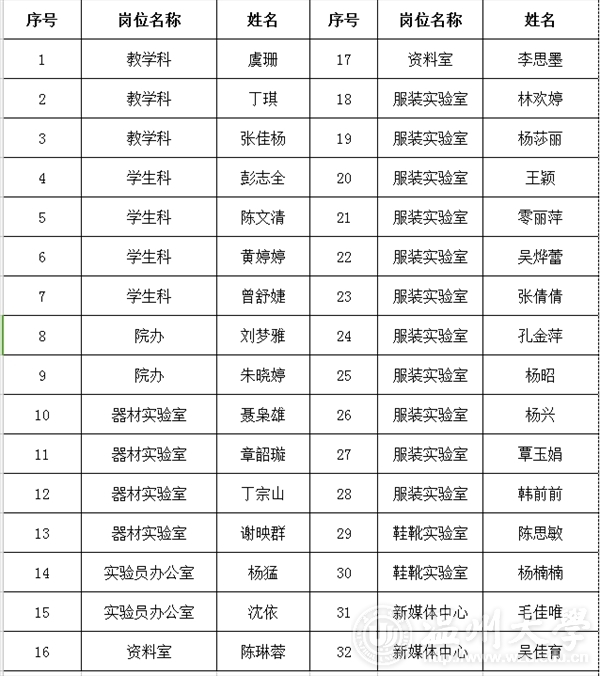 2016-2017学年第二学期必赢bwin线路检测中心勤工助学岗位名单