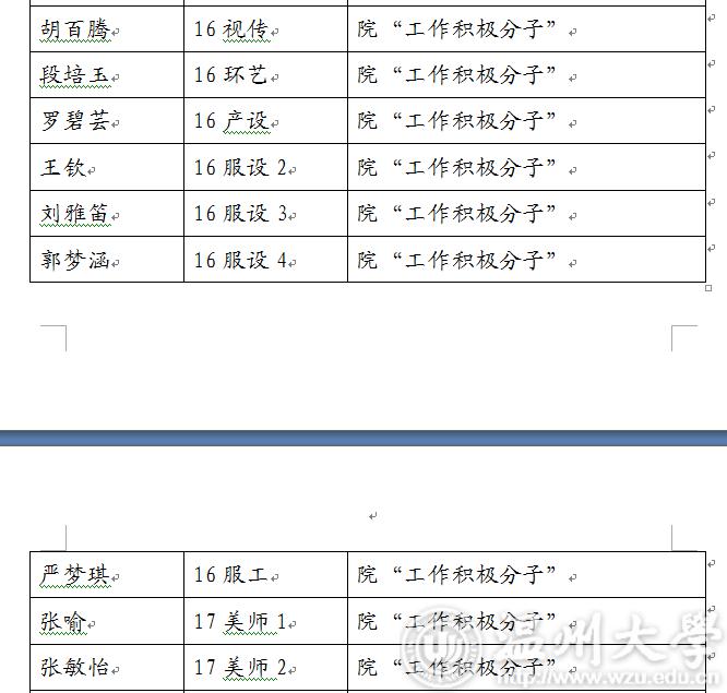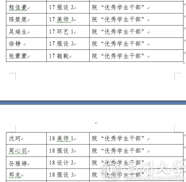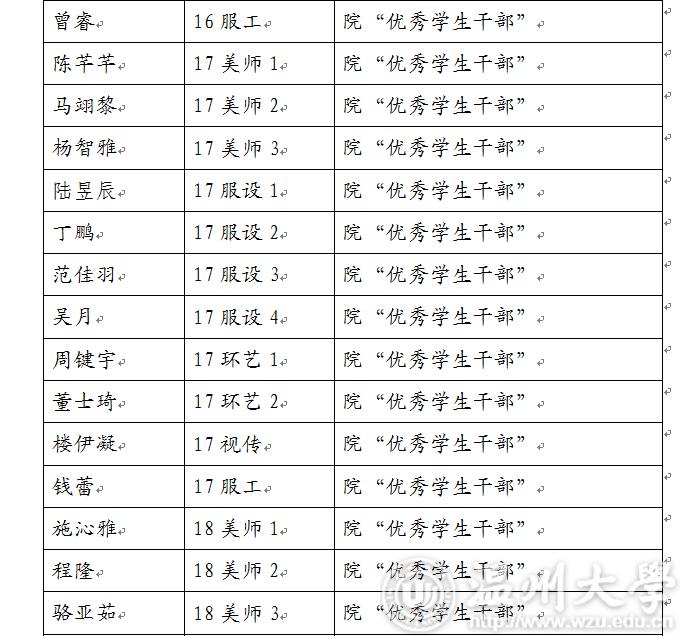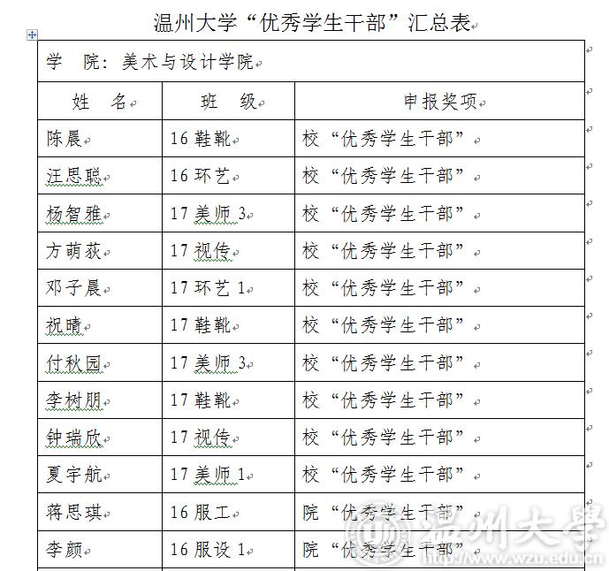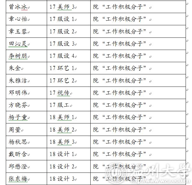 现将2018-2019学年第一学期必赢bwin线路检测中心“优秀学生干部”“工作积极分子”名单公示如下,如对评选结果有异议,请于3月5日17:00前及时联系美术学院学生科。