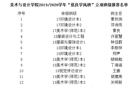 根据必赢bwin线路检测中心2019/2020学年“优良学风班”立项申报工作的通知要求,经班级申报、学院初步审核,现决定对17环境设计本1等12个班级进行立项推荐,现将结果予以公布。
